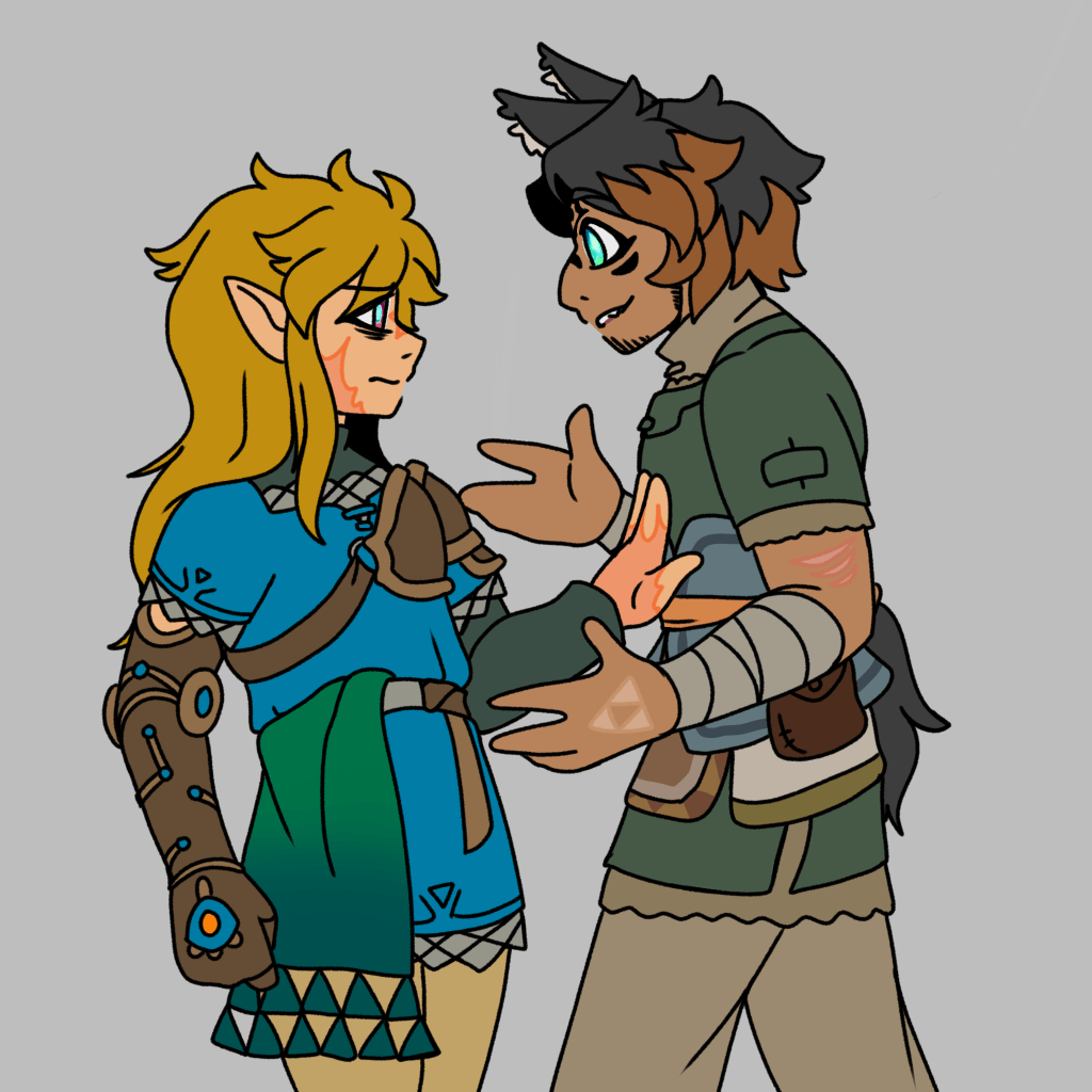 Rancher cradles Champion after he is attacked by Dark LinkRancher recognizes Champion from a time long past- the sentiment is not reciprocated Legend is Pico’s favorite person to bother. Legend secretly enjoys his company.